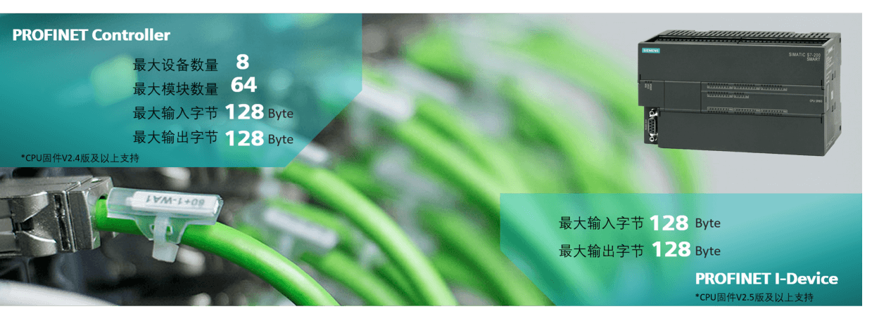 S7-200 SMART CPU集成的PROFINET端口,支持PROFINET控制器和PROFINET智能设备功能。便捷连接PLC、HMI、IoT、伺服驱动器、变频器、软启动器、按钮开关等设备,为客户提供一套面向未来的创新解决方案。西门子PROFINET-助力SMART通信更便捷